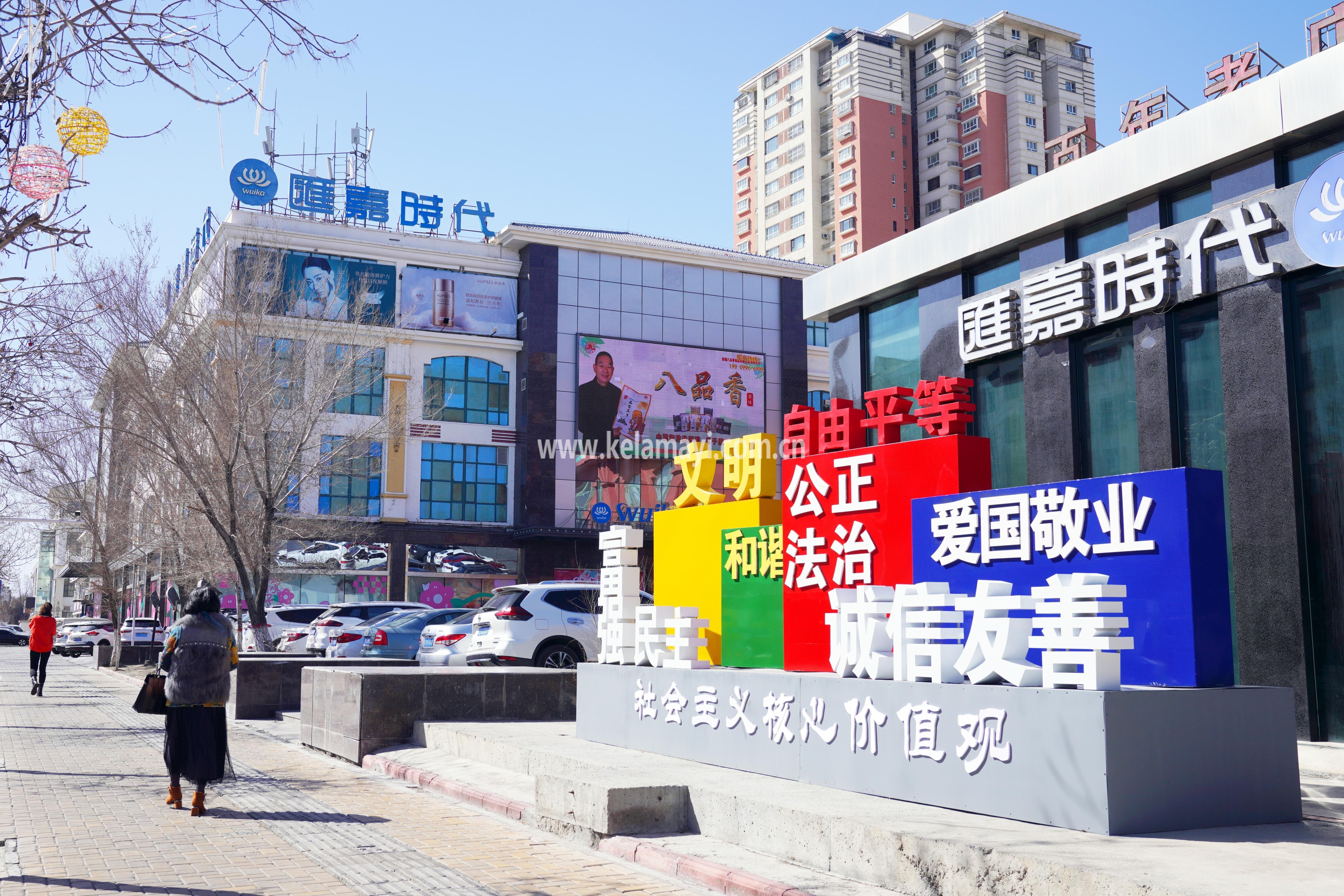这些景观小品是我市结合建筑物、绿地等布局特点设置的,整体颜色、风格与周围建筑相呼应,与城市色彩相融合,营造“一步一景,步步文明”的创城氛围。景观小品的内容涵盖社会主义核心价值观、创建文明城市、市民文明公约等主题,不仅增强了创城工作宣传的多样性和艺术性,更提升了城市整体形象。