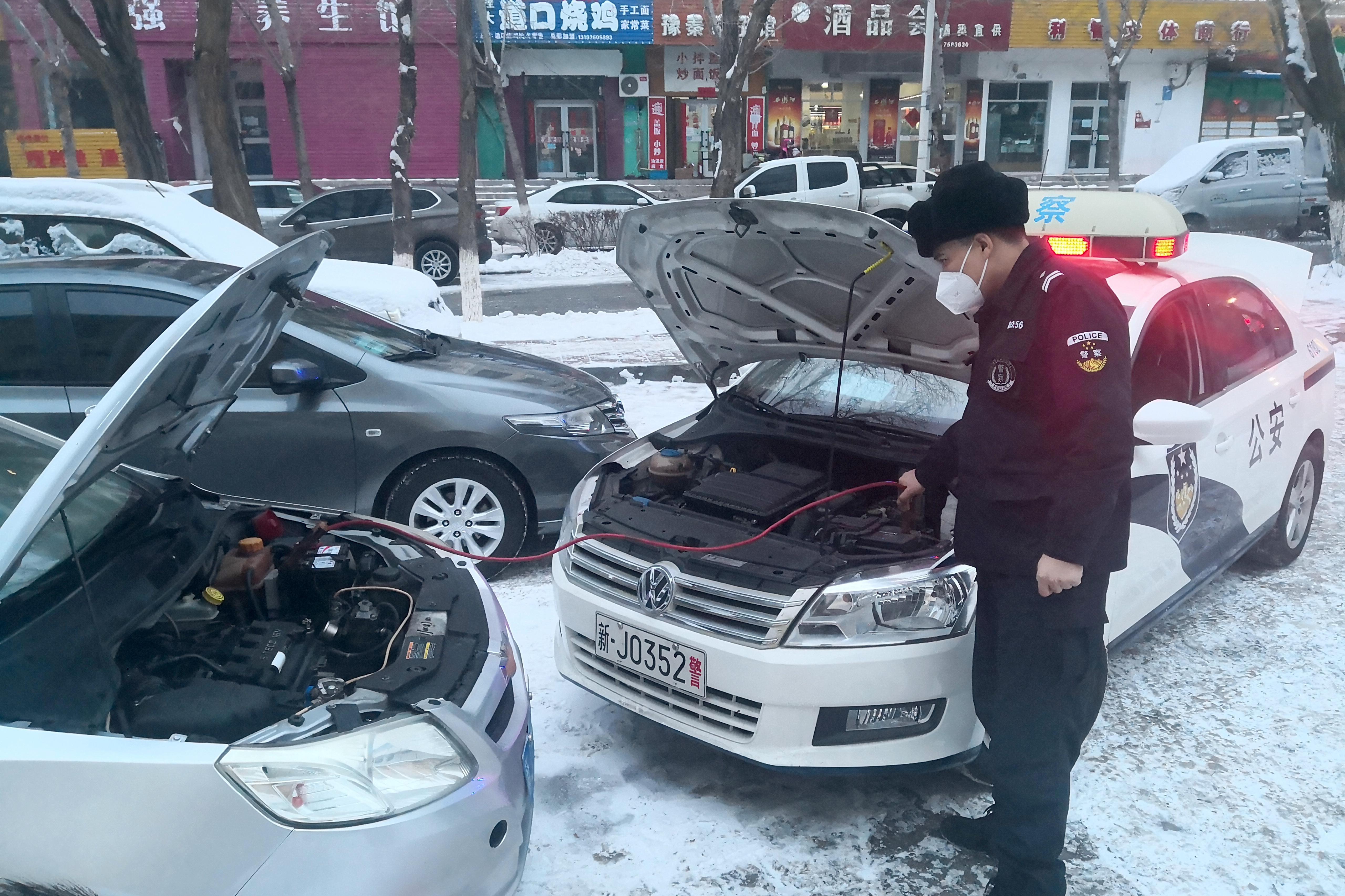 2月6日,白碱滩区公安分局白碱滩派出所警务人员遇到辖区群众无法发动车辆,立即拿出工具“牵线搭电”,使其成功发动。