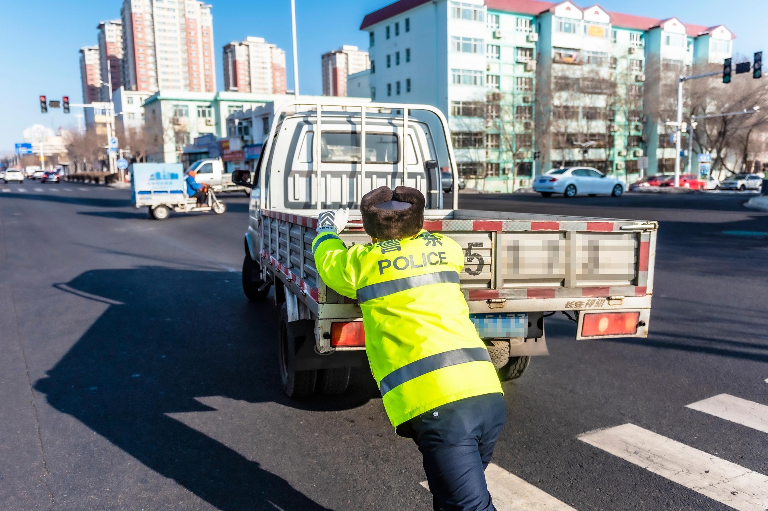 2月14日,民警救助一辆抛锚客货车。当天,市公安局交警支队市区大队民警巡逻至西环路鸿雁路口时,发现一辆客货车在路口抛锚,造成交通拥堵。民警立即帮忙将车推到路边,联系拖车将车辆送至修理厂。