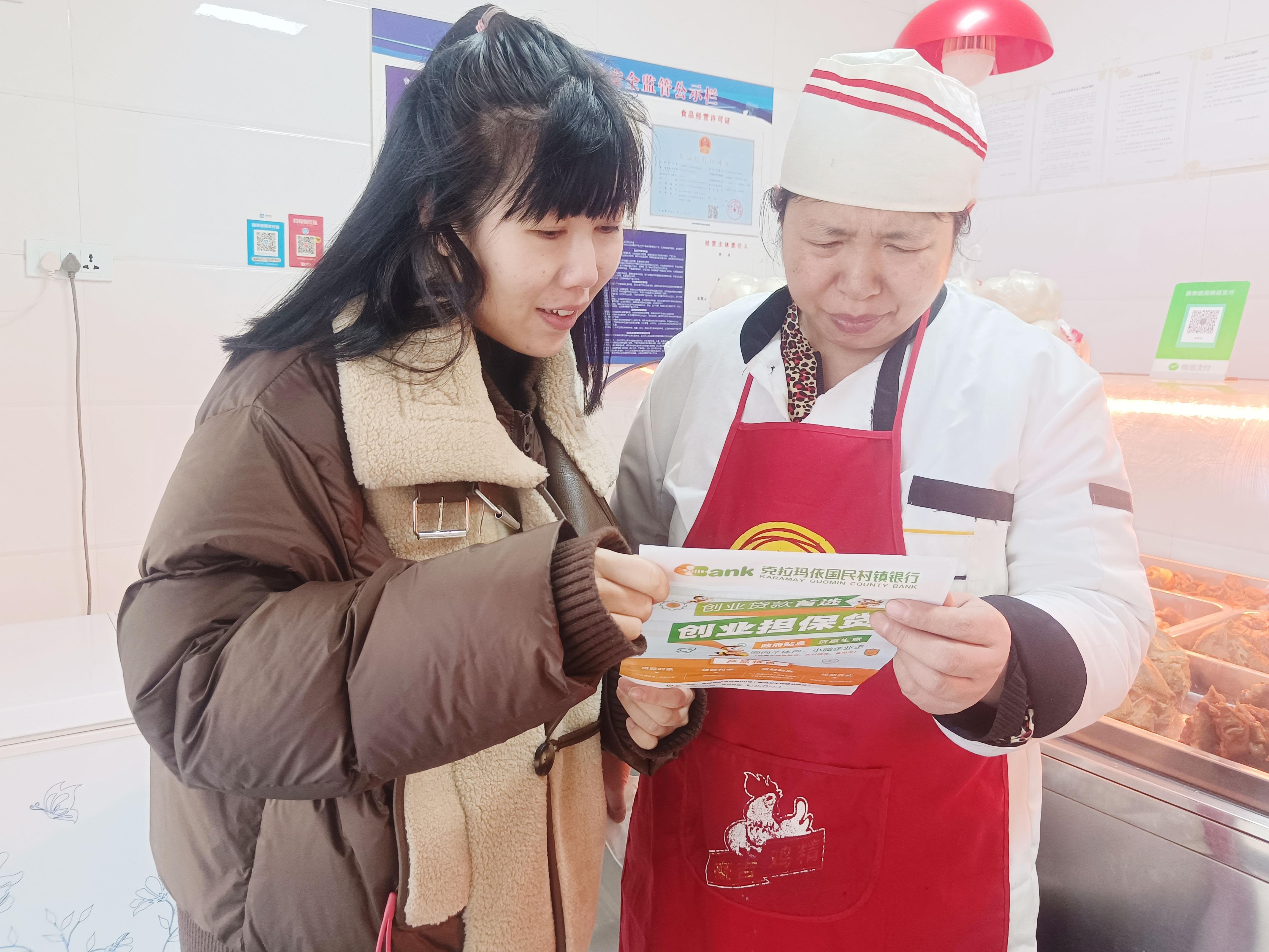 2月17日,跃南社区工作人员(左)为辖区商户宣传就业创业政策。近期,白碱滩区(365bet体育滚球_365bet网络足球赌博_365bet网上网投高新区)中兴路街道跃南社区“访惠聚”工作队和社区“两委”,开展了就业创业政策宣传活动。社区工作人员走访辖区商户、走进居民家中,向群众宣传创业补贴政策、就业技能培训、小额贷款政策等,让群众能及时掌握、享受相关政策信息和实惠。