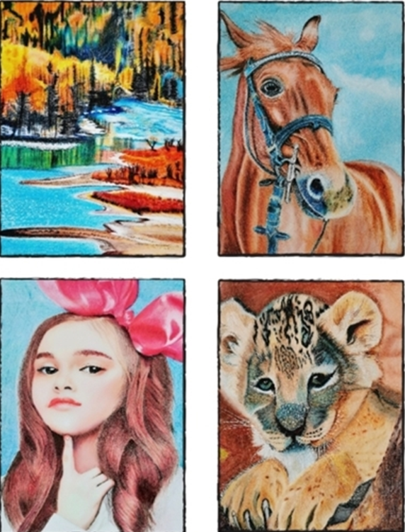 在选课过程中,我接触到了彩铅画。我被它细腻的画面和饱满的色彩吸引,便从握笔、画线条这些基本功开始练习。之后,一步步学习比例、明暗、透视、质感、色彩等内容,跟着老师画静物、画动物、画人物、画风景。看着自己逐渐成形的作品,我心中涌起了难以抑制的喜悦和成就感。