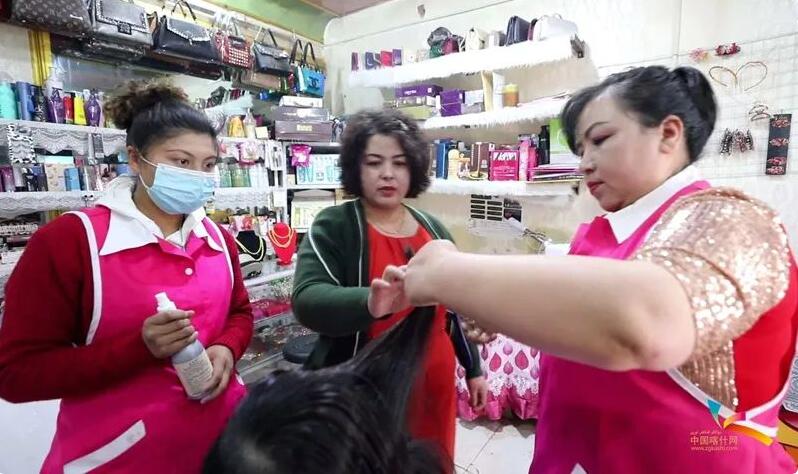 五年前,如鲜古丽家是建档立卡贫困户,家中人口多、耕地少,自己和丈夫又无一技之长。工作队队员每天走家串户宣传党的各项惠农政策,鼓励村民学习技能增加收入。当年,如鲜古丽发现街上的妇女穿着打扮越来越时尚,而乌帕尔镇巴扎上美容美发店铺却很少。发现商机的她,赶紧到喀什市一家朋友开的美发店当起了学徒。不到一年,如鲜古丽就学到手艺,在乌帕尔镇开起了自己的美容美发店。