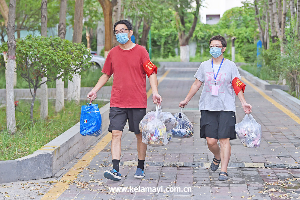 8月13日晚,市区通讯社区通讯花园小区,一对夫妻志愿者正在为居民倒垃圾。日前,银河路街道通讯社区有十余对夫妻一起参加志愿服务。其中,该社区鸿富小区成立了“夫妻岗”党员突击队,突击队共有4对夫妻。他们主要从事小区门岗值守、特殊群体关爱、居民生活物资保障,以及收垃圾、倒垃圾等志愿服务。疫情防控期间,我市各街道、社区充分发挥党员先锋模范作用,充分利用家庭成员之间配合默契的优势,吸纳了部分主动报名的“家庭档”志愿者,更好地助力疫情防控。