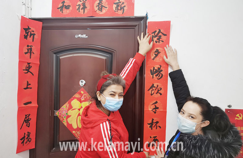爆竹声声除旧岁,喜气洋洋迎新年。新春佳节来临之际,我市各“访惠聚”驻社区工作队与各族群众共迎新春佳节,一起贴春联、挂灯笼、剪窗花……火红的楹联旁,映衬的是一张张真诚、温暖的笑脸;喜庆的氛围中,涌动的是直抵心灵的温情和快乐。