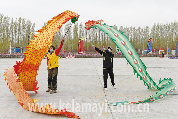 自治区体育总会风筝专项委员会成员舞动健身龙彩带。